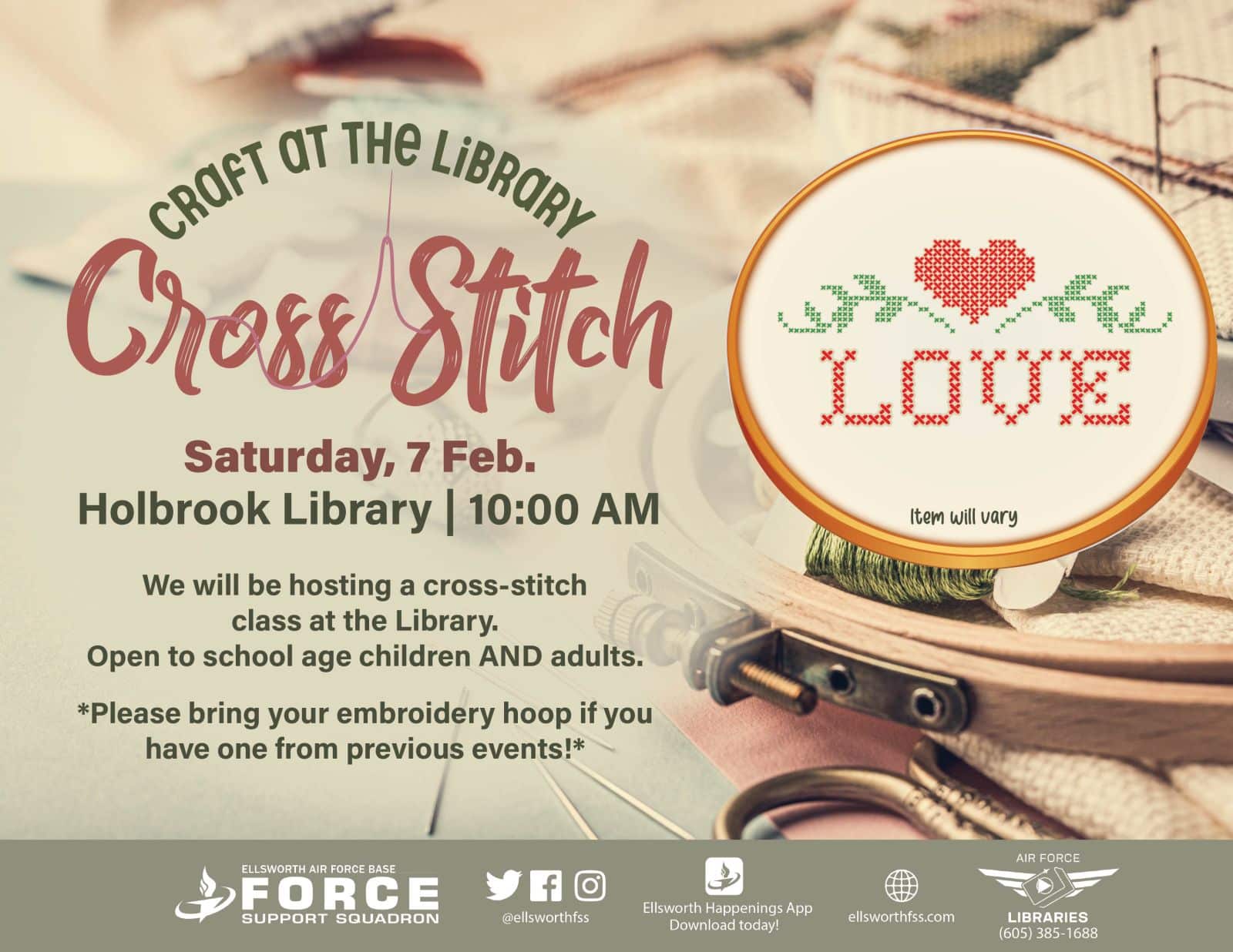 7 February 10:00 AM We will be hosting a holiday themed cross stitch class at the library. Open to school age children and adults. Please bring your embroidery hoop if […] |
