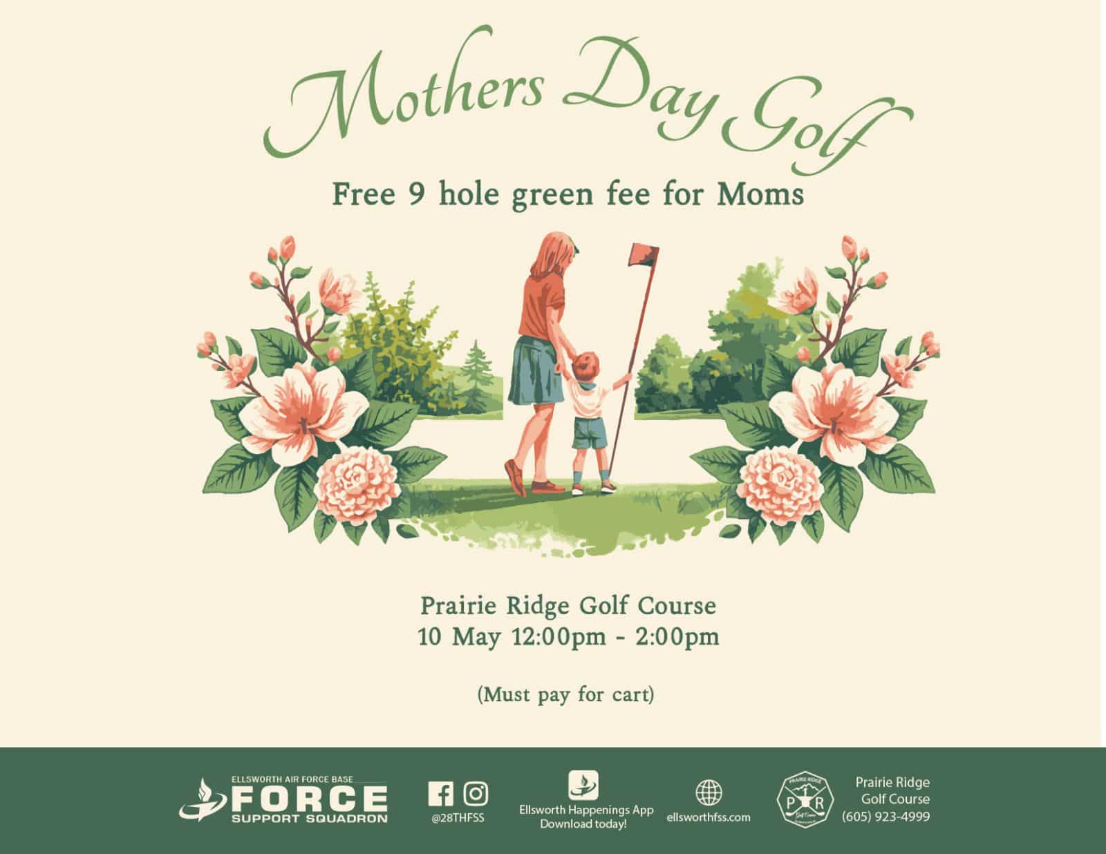10 May 12:00 PM to 2:00 PM FREE 9 hold green fee for moms on Mother's Day! Must pay for cart. For more information, please contact Prairie Ridge Golf Course […] |